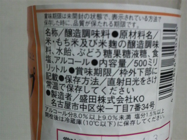 アルコール度数は10度以下だし、糖類添加してあるし。ただ「みりん風調味料」のように、化学調